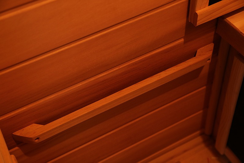 Selectie van superieure materiaal: Premium Hemlock wordt gekozen als het primaire materiaal voor de saunakamer. De natuurlijke, mooie textuur van Hemlock biedt een rustieke en natuurlijke visuele ervaring. De uitstekende hoge temperatuurweerstand zorgt ervoor dat de sauna vervorming blijft - vrij en scheur - resistent, zelfs na verlengd gebruik bij hoge temperaturen. Tijdens frequent dagelijks gebruik kan de saunakamer bijvoorbeeld zijn stevige structuur behouden. Bovendien bieden de stabiliteit van de Hemlock en de natuurlijke houtachtige geur gebruikers een comfortabele en geruststellende sauna -ervaring.