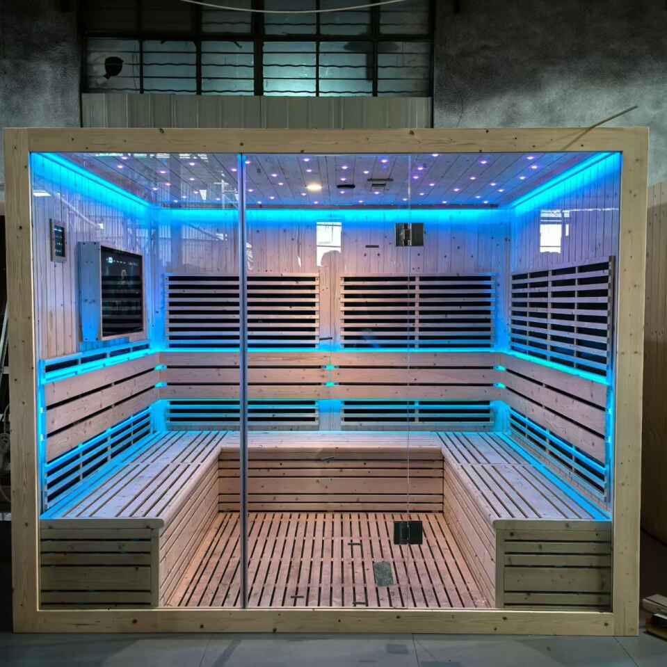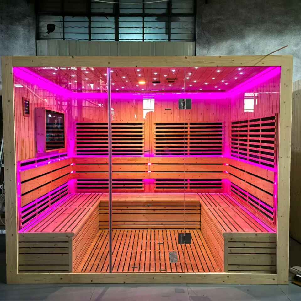 Bent u op zoek naar een ruime en luxe sauna-oplossing voor groepsontspanning, gezelligheid of commercieel gebruik? Onze 5-10-persoons saunahout-ver-infraroodsauna met lcd-tv is afgestemd op uw behoeften en integreert hoogwaardige materialen, geavanceerde technologie en een mensgericht ontwerp.