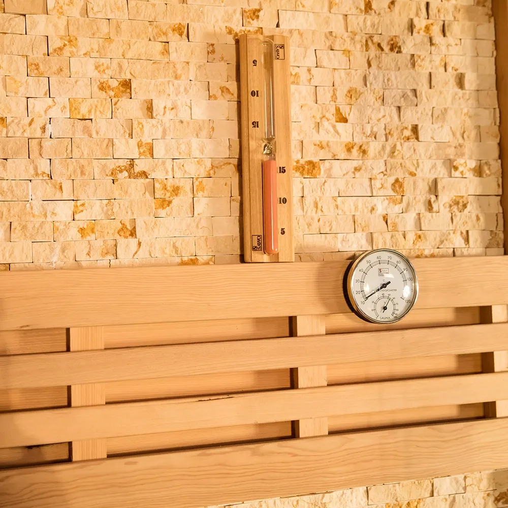 - Timingzandloper: gemaakt van borosilicaatglas en natuurlijk mat kwartszand, nauwkeurige timing van 30 minuten. De retro-timingmethode voegt een gevoel van ritueel toe aan de sauna-ervaring.