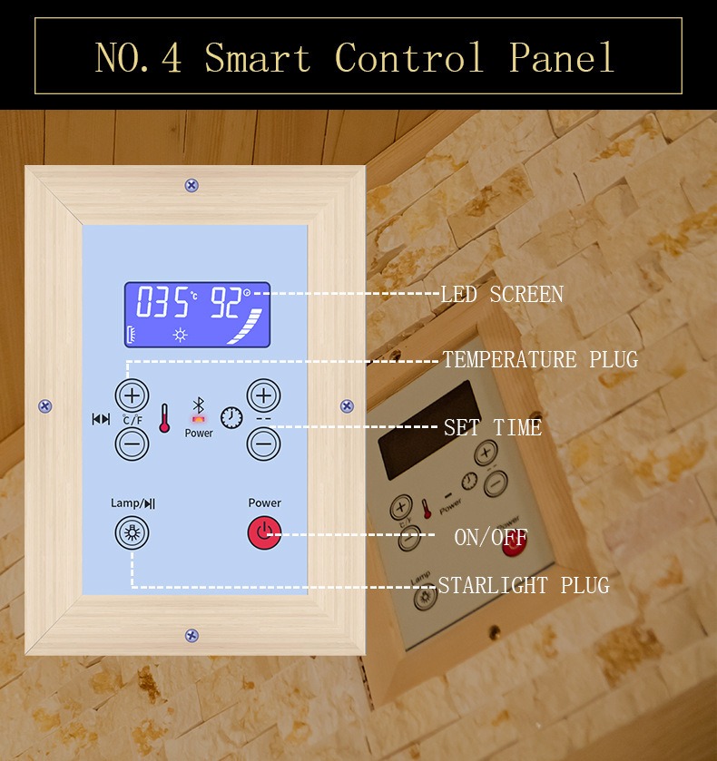 - Temperatuursensor: ingebouwd in de zijwand van de sauna om temperatuurveranderingen in verschillende gebieden nauwkeurig vast te leggen, waardoor een gelijkmatige verwarming wordt gegarandeerd.