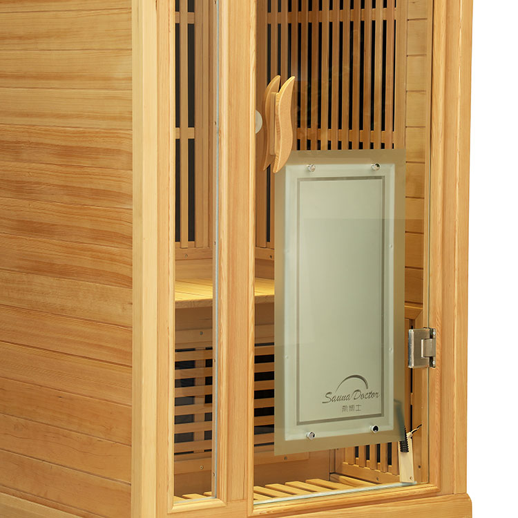 Een infraroodsauna, of ver-infraroodsauna, gebruikt infraroodlicht om warmte te creëren. Ook bekend als infraroodtherapie, verwarmen de infraroodlampen het lichaam van binnenuit, wat betekent dat uw lichaam direct wordt verwarmd door de lichtgolven die uw huid binnendringen. Zie het als wanneer je op een zonnige dag naar buiten loopt en de zon je huid verwarmt. Eenpersoons massief houten ver-infrarood droge stoomkamer werkt op dezelfde manier om uw lichaam te verwarmen, uw spieren en zenuwen te bereiken, en is volkomen veilig in gebruik.