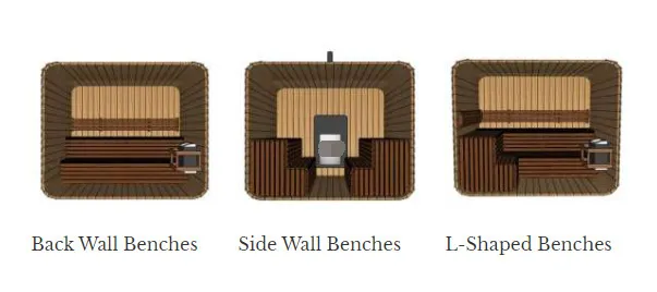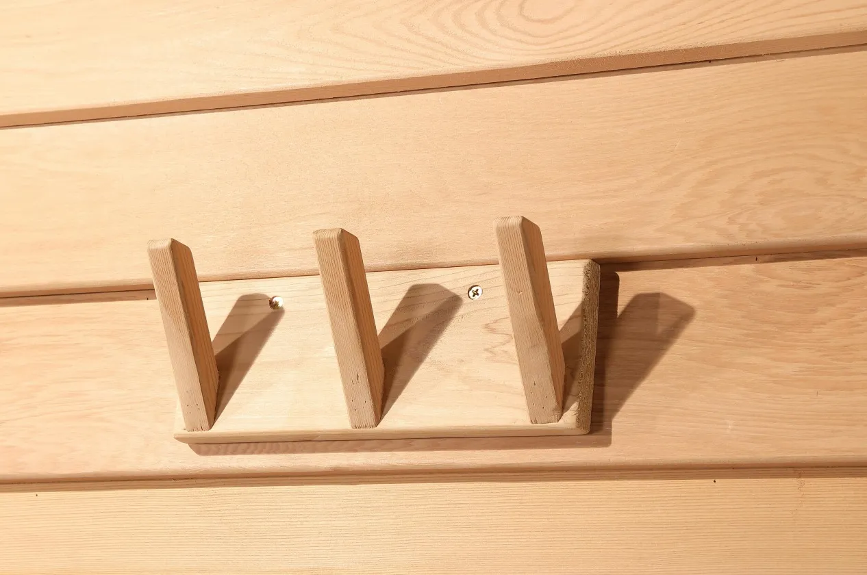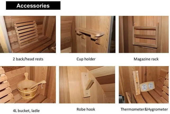 - Gemaksaccessoires: bekerhouder, tijdschriftenrek, ingebouwde kleerhanger (voor het nonchalant opbergen van kleding en handdoeken, zodat er geen rommel ontstaat tijdens saunasessies);