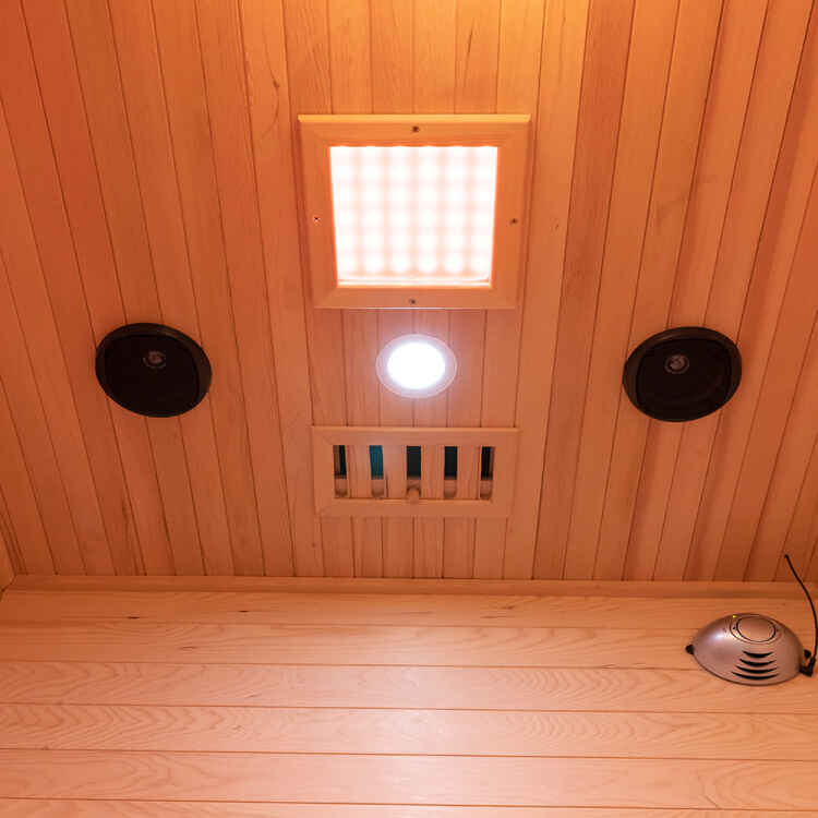 De houten infrarood- en stoomsauna voor 1-3 personen zit boordevol geavanceerde functies om uw wellnessreis te verbeteren: infraroodverwarmers en ver - infrarood grafeen verwarmingsplaten (zorgen voor een gelijkmatige, efficiënte verwarming voor diep, ontspannend zweten); Zuurstofionisator (zuivert de lucht in de sauna, waardoor een frisse en verkwikkende sfeer ontstaat); Leeslamp en luidspreker (hiermee kunt u muziek lezen of luisteren terwijl u geniet van uw saunasessie); Configuratiescherm (maakt eenvoudige aanpassing van temperatuur, tijd en andere instellingen mogelijk voor een persoonlijke ervaring); Saunakachel en lichtgolfbuis (werken samen om stoom en infraroodwarmte te genereren, geschikt voor liefhebbers van stoom- en ver-infraroodsauna's).