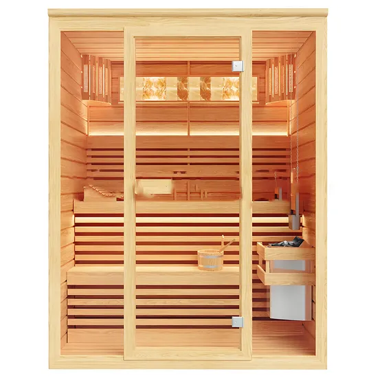 Hottags: Massief houten 2-in-1 sauna – uitgerust met verwarmingskachel en warmtepanelen, fabrikanten, leveranciers, groothandel, fabriek, aangepast, op voorraad, China, korting, prijs, mode